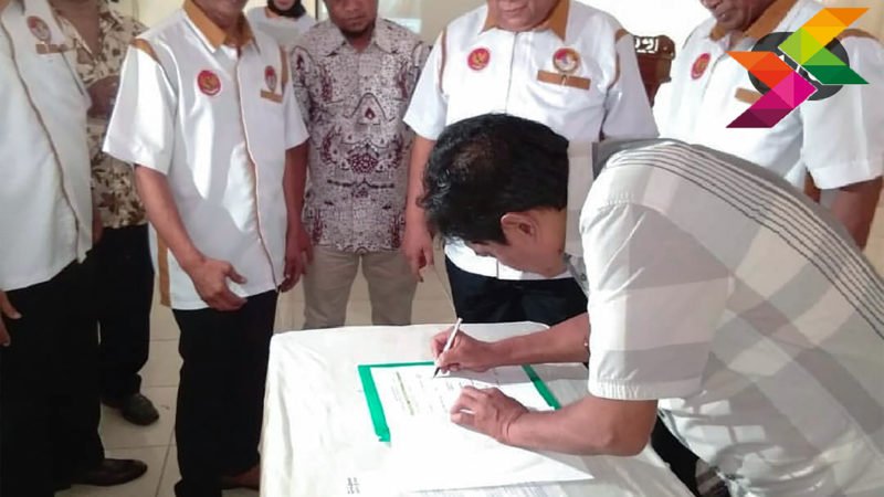 Salah seorang Deklarator Deden Darmansyah sedang menandatangani Percepatan Pembentukan Daerah Otonomi Baru (PP DOB), Rabu (30/1/2019).