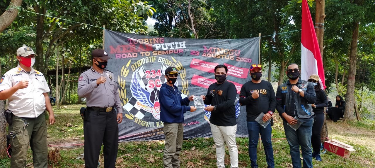 Touring Merah Putih ke Puncak Sempur Bagikan Ribuan Masker