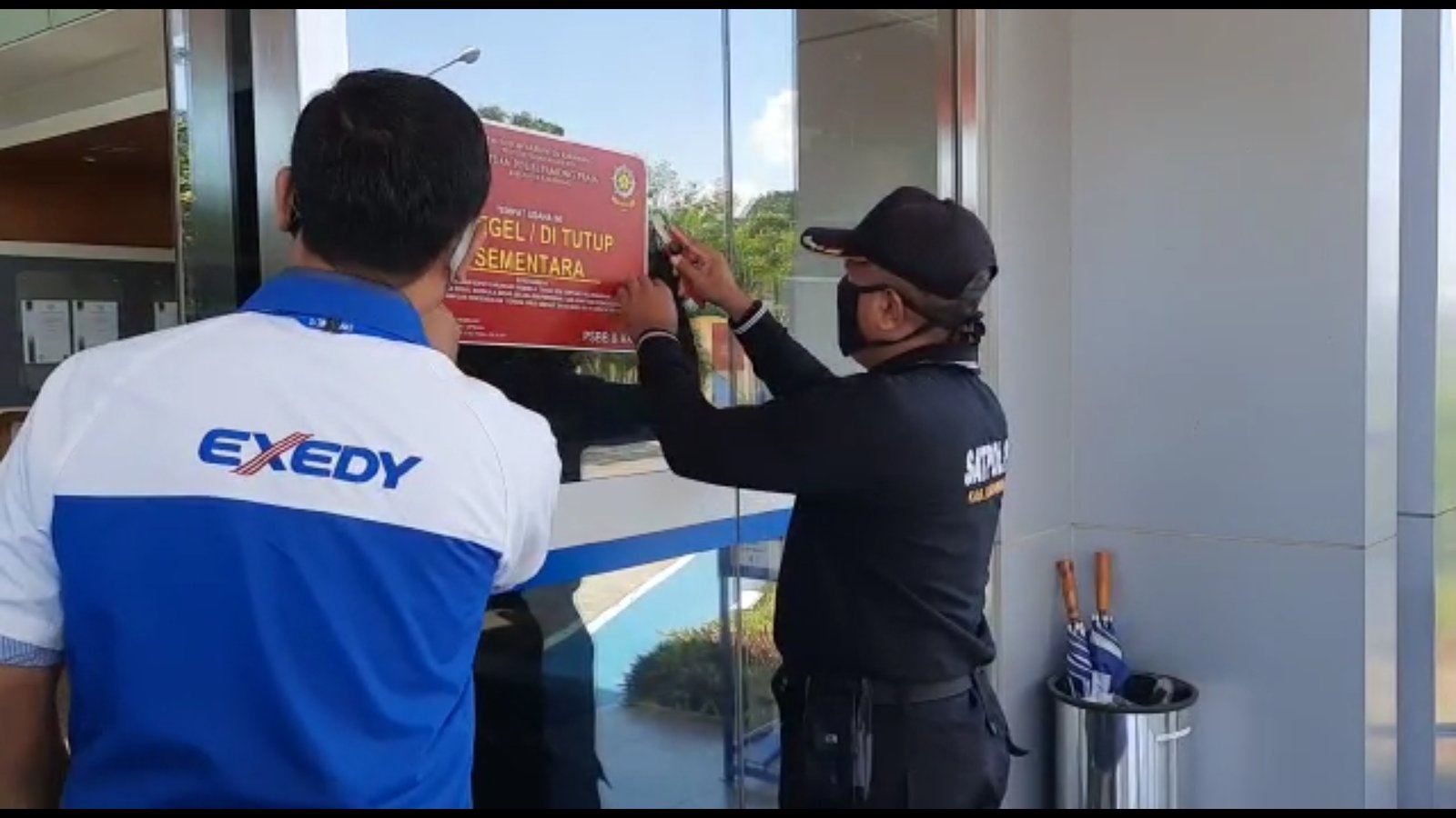 Berdasarkan video berdurasi 10 detik yang sudah beredar, dua orang berseragam perusahaan dan dua orang security terlihat mencopot segel yang dipasang Gugus Tugas.