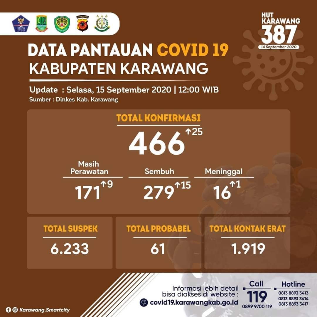 Saat ini, dijelaskan Fitra, sudah 466 warga Karawang yang terinfeksi virus Corona, dengan rincian 171 orang dalam perawatan, 279 dinyatakan sembuh dan 16 orang meninggal dunia.