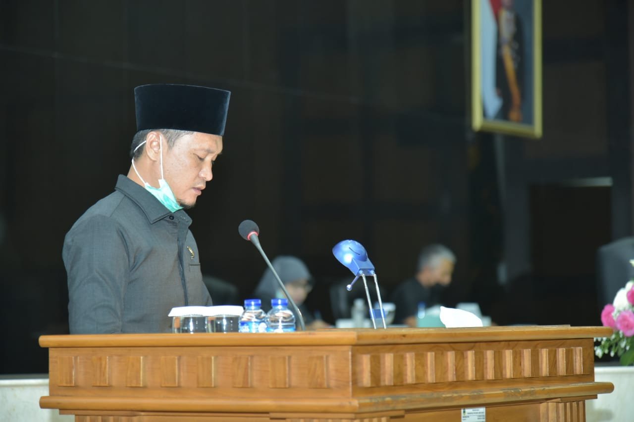 BaskomNews.com – Ihsanudin, Anggota Fraksi Partai Gerindra mengemukakan pandangan umum pada sidang Paripurna Rancangan Perubahan Anggaran Pendapatan dan Belanja Daerah (RPAPBD) Provinsi Jawa Barat Tahun Anggaran 2020 di ruang paripurna DPRD Provinsi Jawa Barat, Kamis 24 September 2020.