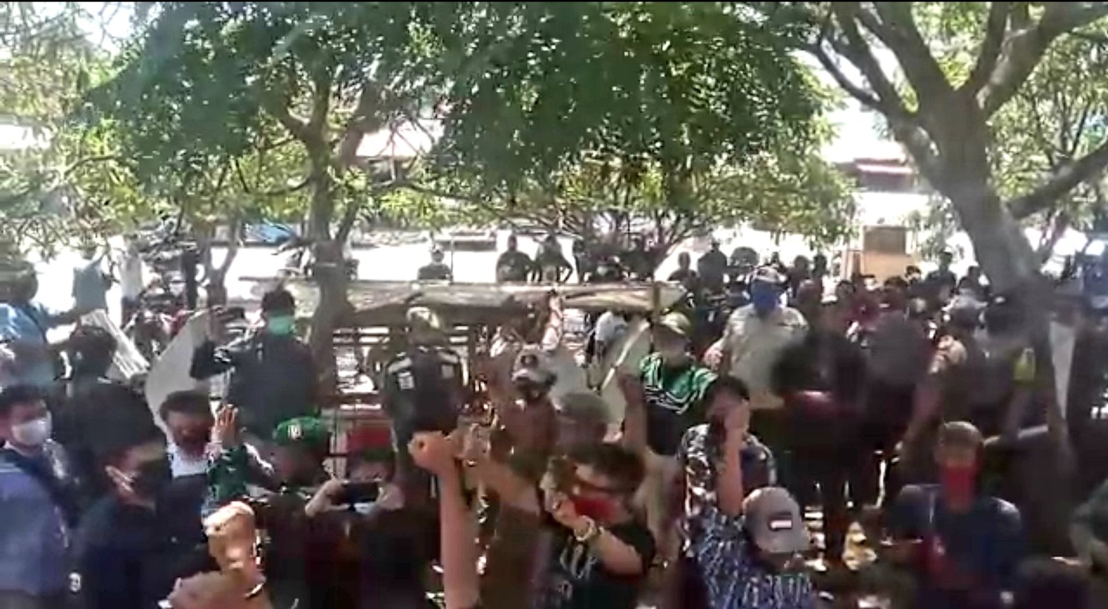 Deklarasi KAMI Karawang yang berlangsung dari pukul 08.00 WIB hingga pukul 12.00 WIB, terpaksa harus dihentikan oleh aparat gabungan dari TNI-Polri, Satpol PP yang tergabung dalam Tim Gugus Tugas Percepatan Penanganan (GTPP) Covid-19 Kabupaten Karawang.