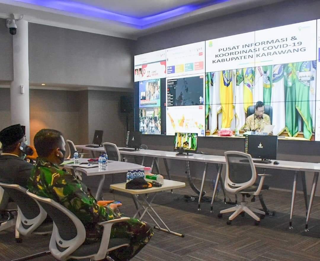 Ikut hadir mendampingi, Kapolres Karawang, Kajari Karawang dan Dandim 0604 Karawang. Rakor diikuti secara virtual melalui video conference dari Command Centre Lantai 3 Gedung Singaperbangsa Karawang, Jumat (2/10/2020) pagi.