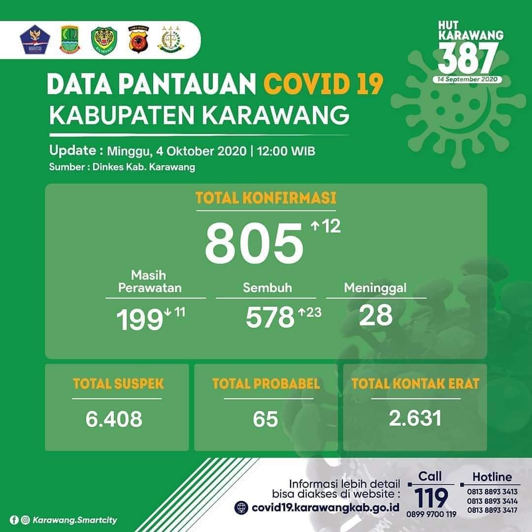 Data Satgas Penanganan Covid-19 Karawang per Minggu 4 Oktober 2020, ada penambahan sebanyak 12 orang.