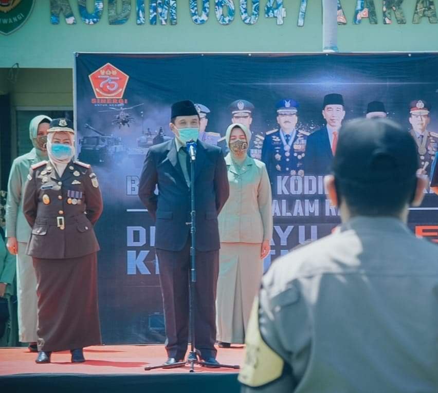 BaskomNews.com – Pjs Bupati Karawang, Ir. Yerry Yanuar bersama Forum Koordinasi Pimpinan Daerah Karawang mengikuti upacara Hari Ulang Tahun (HUT) ke-75 TNI secara virtual bertempat di Command Centre Makodim 0604 Karawang, Senin (5/10/2020) pagi.