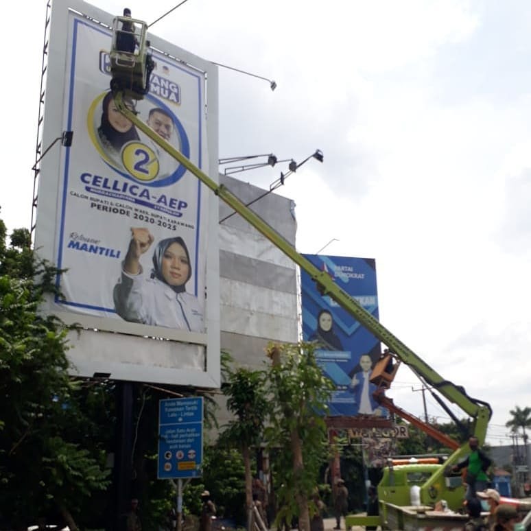 Penertiban tersebut dilaksanakan setelah melalui proses pengawasan dan penanganan pelanggaran yang dilakukan oleh Bawaslu Kabupaten Karawang.