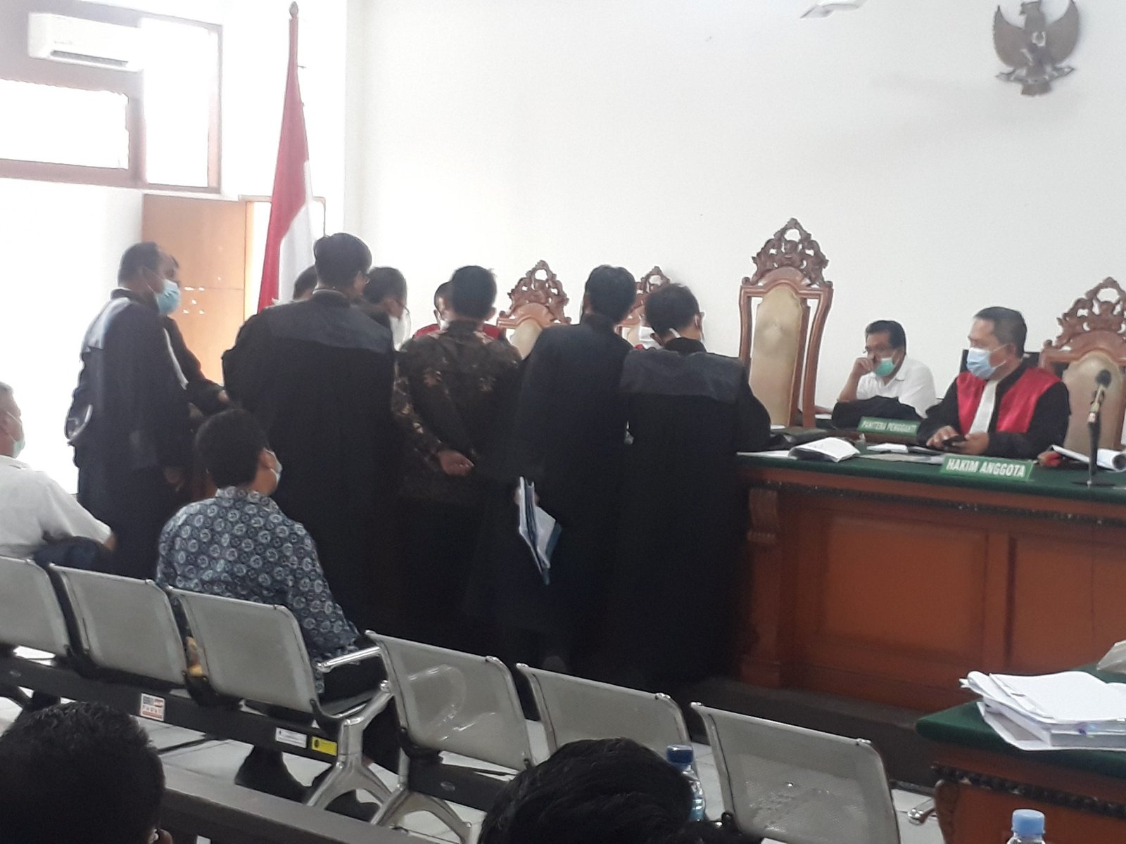 Setelah sempat terlihat berdebat antara Asep Agustian SH MH dengan saksi Sulistiyono, akhirnya Ketua Majelis Hakim Darianto SH MH mempersilahkan para pengacara dan saksi duduk ke tempat masing-masing. (red)