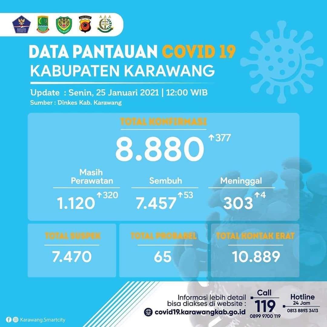 BaskomNews.com – Juru bicara Satgas Covid-19 Karawang, dr. Fitra Hergyana Sp.KK menyebut angka kesembuhan Karawang sebesar 84,51% dari total warga Karawang yang terpapar virus corona yakni 9.379 orang, dengan rincian 1.134 dalam perawatan, sembuh 7.927 orang dan meninggal 318 orang.