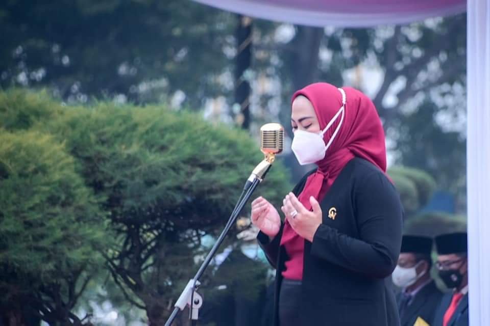 Karawang,BASKOMNEWS – Bupati Karawang, dr. Hj. Cellica Nurrachadiana bertindak sebagai Inspektur Upacara pada peringatan Hari Kesaktian Pancasila 1 Oktober 2021 yang berlangsung di Halaman Plaza Pemda Karawang, Jumat (1/10). Bertindak sebagai pembaca teks Pancasila, Dandim 0604, pembaca teks UUD 1945, Kepala Polres dan pembaca Ikrar Kepala Kejaksaan Negeri Karawang.