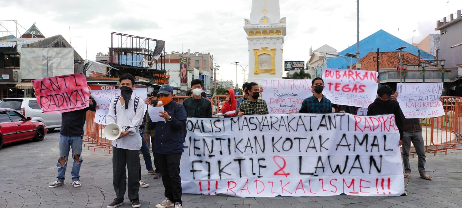 Koalisi Masyarakat Anti Radikalisme menggelar Aksi Damai ‘Lawan Radikalise dan Hentikan Penarikan Infak Atas Nama Kemanusiaan’ di Tugu Pal Putih Jogja.