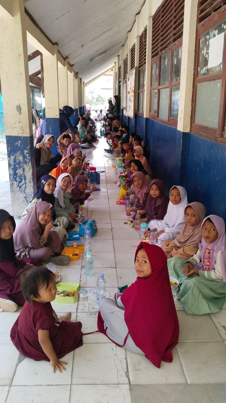 Sementara sebelum kegiatan terpantau, siswa dan siswi pun tengah menikmati makanan yang dibawa dari rumahnya masing-masing.