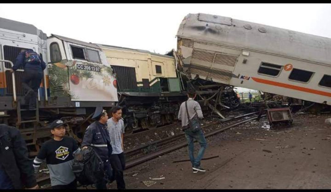 Dugaan sementara, kereta vs Kereta itu adalah kereta Turangga dan Kereta Baraya. Sebagian kondisi gerbong bahkan ada yang keluar rel dan nyaris terbalik.