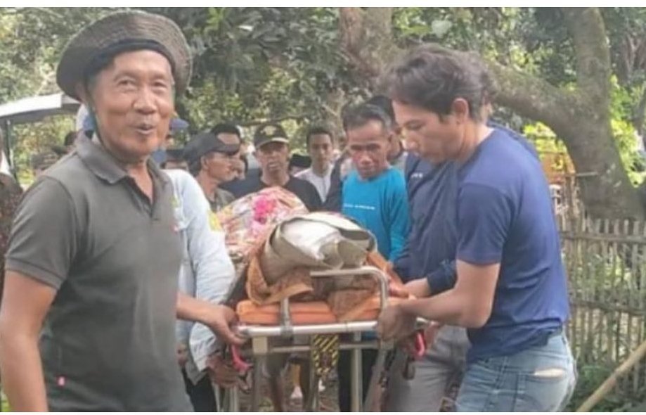 Isak tangis mengiringi keberangkatan sebuah ambulans milik pemerintah desa yang membawa jenazah Aam Rohimat berusia 40 tahun.