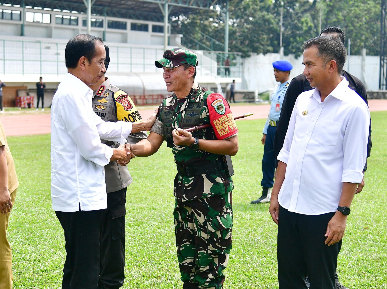 KARAWANG,BASKOMNEWS – Komandan Korem 063/Sunan Gunung Jati Cirebon, Kodam III/Siliwangi, Kolonel Inf Bayu Sudarmanto selaku Dansatgas Pamwil pimpin langsung pengamanan VVIP kunjungan kerja Presiden Republik Indonesia Ir H Joko Widodo beserta rombongan di kabupaten Karawang, Jawa Barat. Rabu (8/5).
